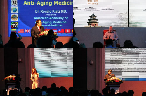 圖解:美國抗衰老醫(yī)學科學院主席羅納德。科萊茲博士、諾貝爾獎獲得者、幽門螺桿菌的發(fā)現(xiàn)者——澳大利亞病理學家羅賓。沃倫博士、美國功能醫(yī)學權威人士安妮特。庫茲.席佩爾,及轉化醫(yī)學、健康管理、心血管、內(nèi)分泌、消化等國內(nèi)外著名醫(yī)學專家,報告了國內(nèi)外健康管理的最新理論和技術進展。